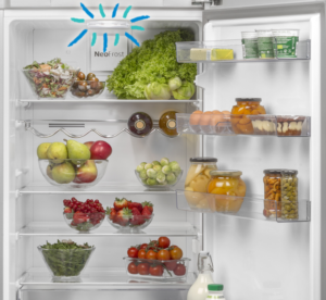 Pot să spun despre modelul nostru este dotat cu tehnologia Neofrost, care înseamnă o tehnologie bazată pe sistemele active dual cooling, și No Frost. Aceste sisteme vor asigura o eficiență de răcire superioară față de alte modele iar curenții de aer verticali vor acționa Independent între cele două compartimente ale frigiderului și a congelatorului pentru a răci eficient fără a mai face schimb de mirosuri între ele.