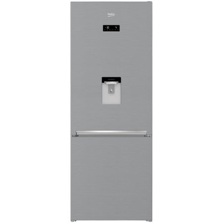 Sa va spun despre Beko RCNE560E30DZXB, este o combina frigorifica moderna, cu un aspect foarte placut, finisajul exterior fiind de brushed steel. Combina Beko RCNE560E30DZXB are un panou de comanda cu touchscreen fix pe peretele exterior, pe usa frigiderului, prin care puteti vedea si temperatura congelatorului si temperatura frigiderului, si le puteti regla individual. Beko RCNE560E30DZXB mai are si un dozator de apa rece (puteti pune practic orice lichid acolo, dar sa tineti seama ca recipientul este de plastic, si daca puneti lichide cu aroma puternica – ca sucurile de fructe, plasticul va lua din mirosul lor; nu ar fi prea bine sa puneti nici lichide carbogazoase, dar puteti pune orice alt lichid pe care doriti sa-l aveti la dozator).