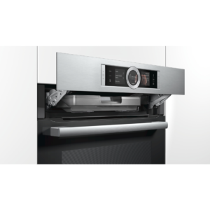 Dupa cum puteti vedea din imagine, Bosch HSG656XS1 are un panou de comanda extrem de modern. Acesta este format din butoane tactile, un inel rotativ intuitiv, dar si dintr-un display TFT color touch screen, care va ofera toate informatiile de care aveti nevoie.