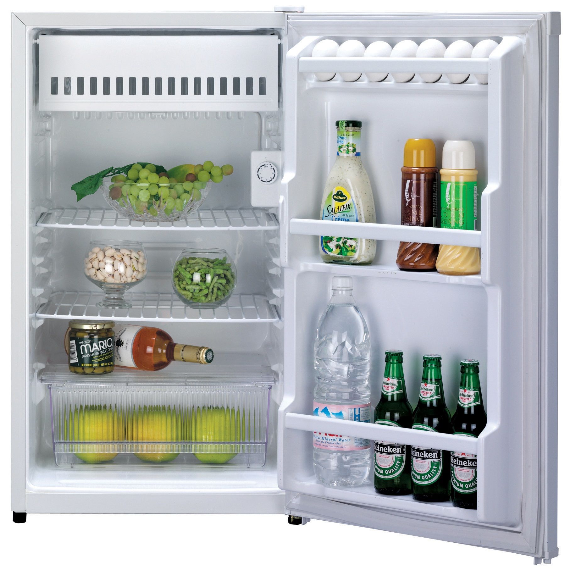 Frigiderul de mici dimensiuni Daewoo FN-063R este un aparat economic, consumul anual incadrandu-se undeva la 110 kwh. Pe de alta parte volumul acestuia masoara 45 litri si o inaltime de 51.1 cm, dar se bucura de asemenea de sistemul usilor reversibile, adica usile pot fi montate atat pe partea stanga cat si pe dreapta in functie de necesitate.