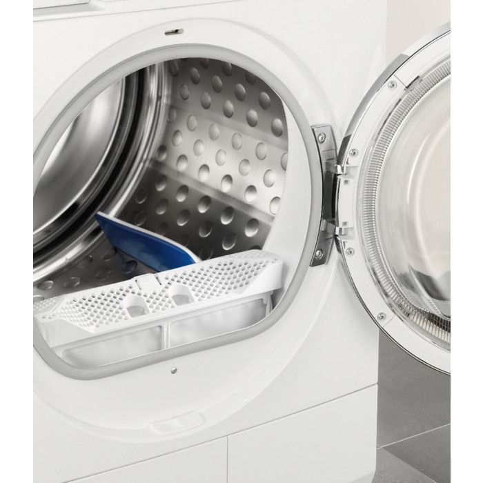 La capitolul tehnologie modelul usuca rufele datorita pompei de caldura care ofera o performanta de uscare foarte buna la un consum de energie minim avand o eficienta energetica clasa A ++. Ca sifunctii pentru uscare avem functii pentru articole sintetice, bumbac, lana si de asemenea putem selecta si o uscare mixta care va usca toate articolele vestimentare intr-un timp record !