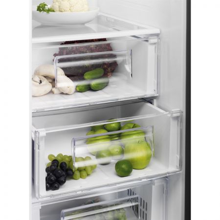 Electrolux EN3852JOW dispune de functiile de Super Racire si de Super Congelare, functii ideale pentru momentul cand sunt introduse alimente proaspete in interior. Acest lucru impiedica cresterea temperaturilor pentru alimentele care se afla in interior, temperatura fiind echilibrata rapid. Tehnologia LED asigura o vizibilitate excelenta in interior, si asigura un consum redus de energie.
