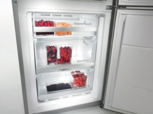 Compartimentul XXL SpaceBox cu un volum de 38 l este cel mai mare spatiu din aparat și este ideal pentru depozitarea alimentelor mari , cum ar fi curcan, carne de porc, sau chiar prăjituri sau torturi. Tehnologia modernă NoFrost asigură circulația aerului dar elimina in acelasi timp umiditatea din congelator pentru ca gheata sa nu se aseze peste alimentele stocate.