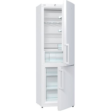Restul rafturilor din partea de sus a Gorenje RK6192AW4 sunt din sticla. Rafturile le puteti aranja dupa cum doriti, se pot scoate si pune in orice slot din interior, sa aveti ce inaltime doriti la rafturi. Sub rafturi, Gorenje RK6192AW4 are o lada pentru fructe si legume. Iar tot in partea de sus, in frigider, usa frigiderului are un raft mare si inalt pentru sticle, si inca doua rafturi pentru orice altceva, oua, borcane, ce doriti sa puneti acolo.