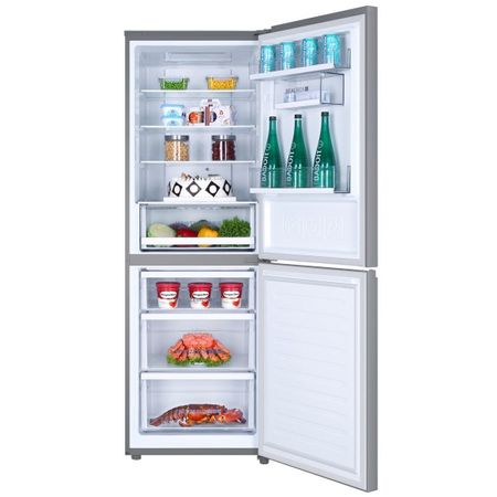 Mi-a placut foarte mult faptul ca sunt 3 rafturi reglabile la interior dintre care 2 pentru salata , pe usa avem 3 compartimente, doua rafturi pentru oua, unul pentru sticla si un compartiment pentru lactate, tot interiorul beneficiaza de iluminare LED. Mi-a atras atentia functia de decongelare automata a frigiderului, zona sertar Moist cat si dezghetarea totala a congelatorului fara inghet. Frig complet ventilat. Acest frigider-congelator este echipat cu frig ventilat. Acest sistem produce aer rece și uscat care circulă constant în unitate. Acest lucru garantează o absență totală de îngheț, facilitează întreținerea, o temperatură uniformă în întreaga unitate și permite depozitarea oricărui aliment pe orice raft.