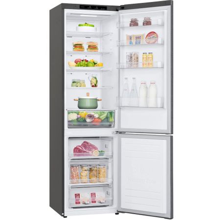 Compresorul LG Inverter Linear Compressor ajută la menținerea temperaturii constante a frigiderului permițând păstrarea prospețimii cu 82% mai mult. Sistemul NatureFRESH ™ controlează precis temperatura frigiderului pentru a menține alimentele proaspete mai mult timp. Are 9 prize de aer lângă fiecare raft.Ieșirea de aer din partea superioară a frigiderului în formă de cascadă vă permite să răciți mai rapid băuturile și mâncarea și reduce diferența de temperatură dintre interior și ușa frigiderului.