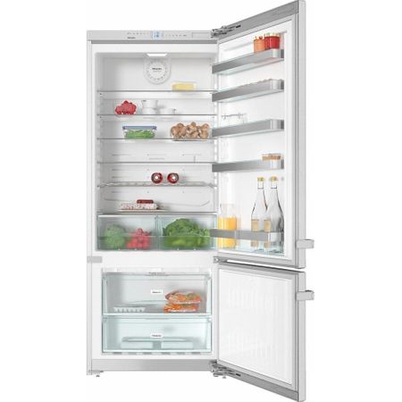 Mi-a placut foarte mult la MIELE KFN 15842 capacitatea de congelare de 8 kg/h cat si controlul tactil prin care puteti regla temperatura separata a frigiderului respectiv a congelatorului, frigiderul este dotat cu 4 nivele de rafturi si cu suport pentru sticle din metal placat cu crom dar si cu 2 cutii de legume detasabile.