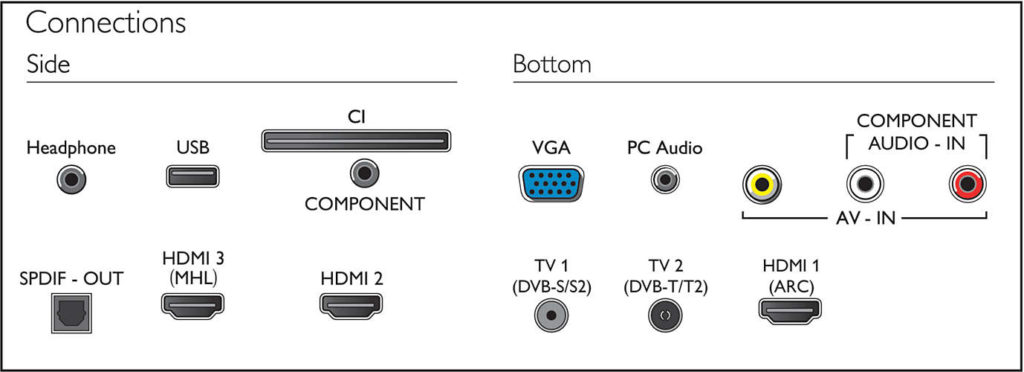 Ca si conectivitate avem porturile HDMI ce sunt ideale pentru console de jocuri sau media box, un port USB ce permite redarea continutului direct de pe stick-ul USB si o functie de Easylink ce poate controla dispozitivele conectate prin aceste porturi !