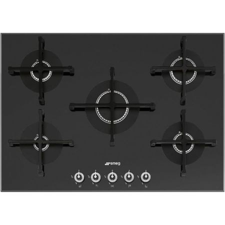 Haideti sa va spun despre, Această plită imensă Smeg PV175N-1 Linea 5 cu arzător oferă o gătire rapidă și rapidă, ideală pentru gospodăriile ocupate. Sticla contemporană neagră adaugă o rotire modernă, în timp ce suporturile durabile și elegante de fontă sunt capabile să facă față celei mai proaste vase. Cu o flacără aproape verticală , căldura este transferată direct în tăvile dvs. pentru a optimiza timpul de gătire și a obține rezultate chiar.